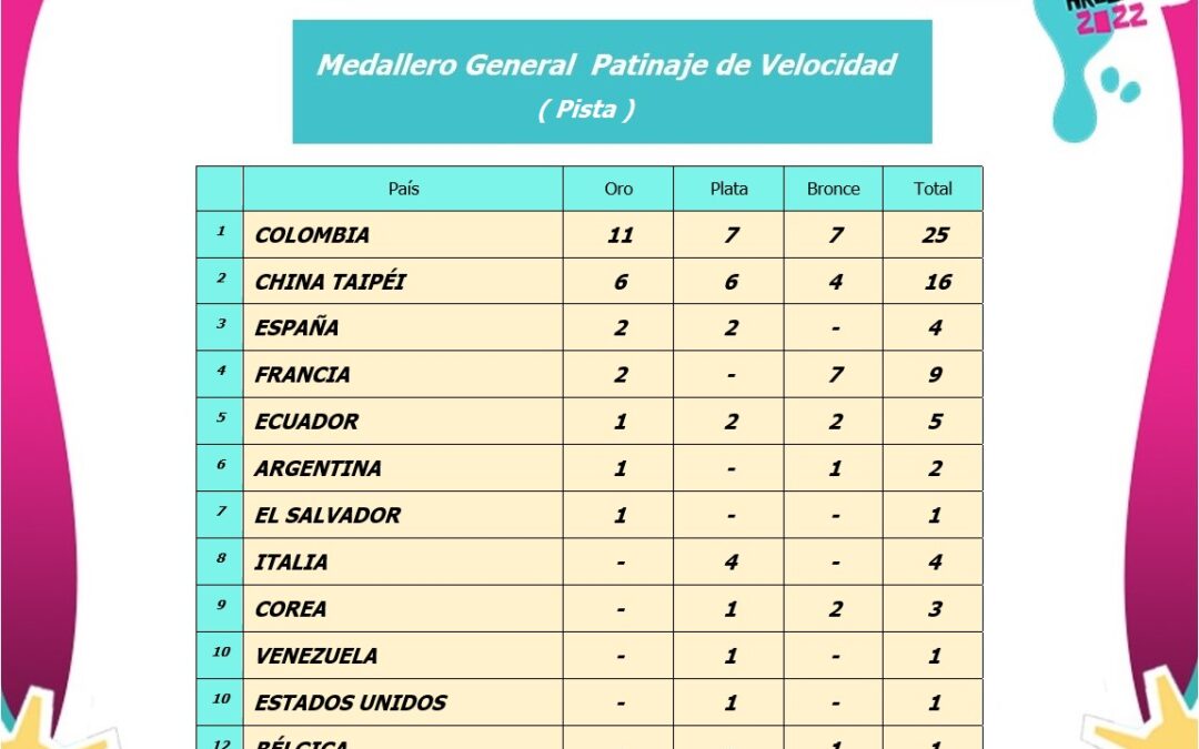 La Selección Colombia de patinaje ganó las pruebas de pista del campeonato mundial de patinaje de velocidad que se realiza en los World Skate Games Argentina 2022, este martes 1 de noviembre jornada de descando y el miércoles 2 de noviembre se inician las pruebas de circuito.